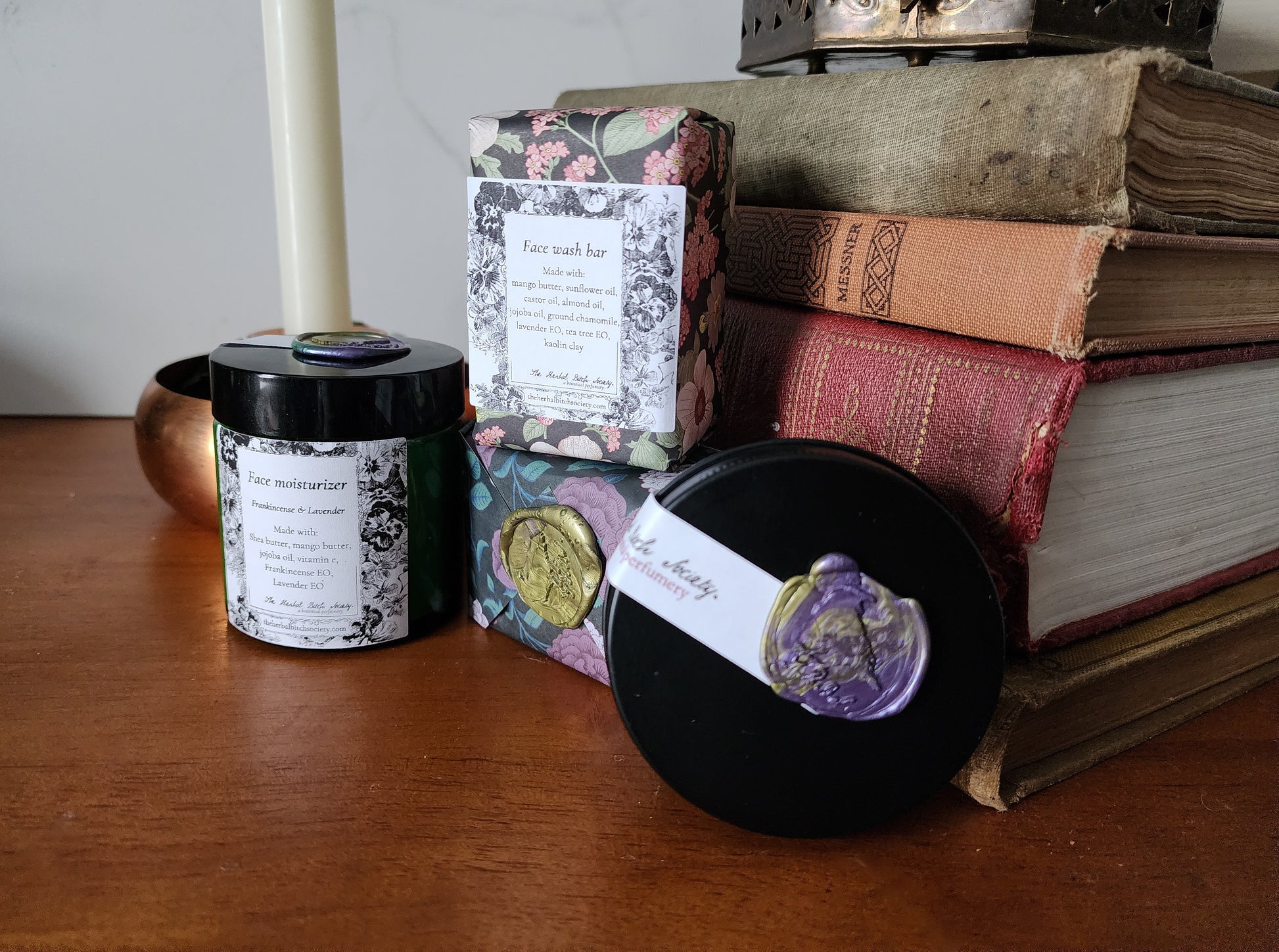 The newest addition to our skin care line up! Our standard eye cream is perfect for day or night. Made with mango butter, coffee infused sunflower oil, vitamin e, and frankincense essential oil. This cream is formulated with nourishing ingredients which help to keep under eyes looking soft and toned. This eye cream comes packaged in a 2 ounce tin.
