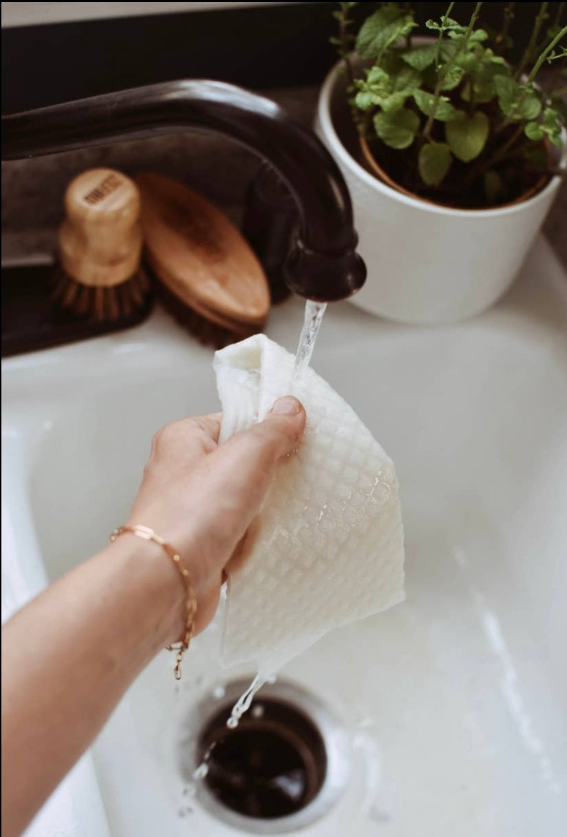 The perfect alternative to paper towels. This reusable can wipe up ample amounts of liquid and be put in the top rack of your dishwasher when it needs a good cleaning. Once it's at the end of its like it can be composted.