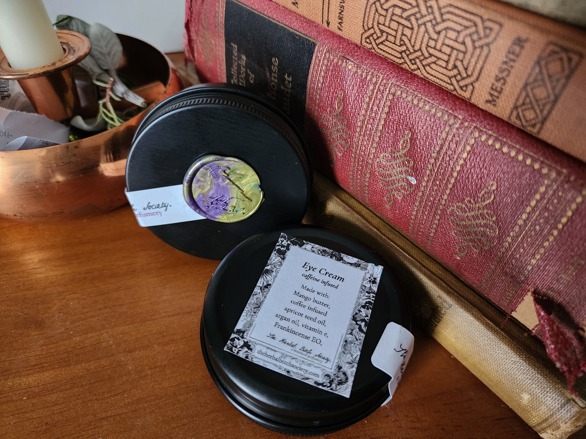 Add this cream to your daily ritual for a bit of under eye rejuvenation. Our standard eye cream is perfect for day or night. Made with mango butter, coffee infused sunflower oil, vitamin e, and frankincense essential oil. This cream is formulated with nourishing ingredients which help to keep under eyes looking soft and toned.